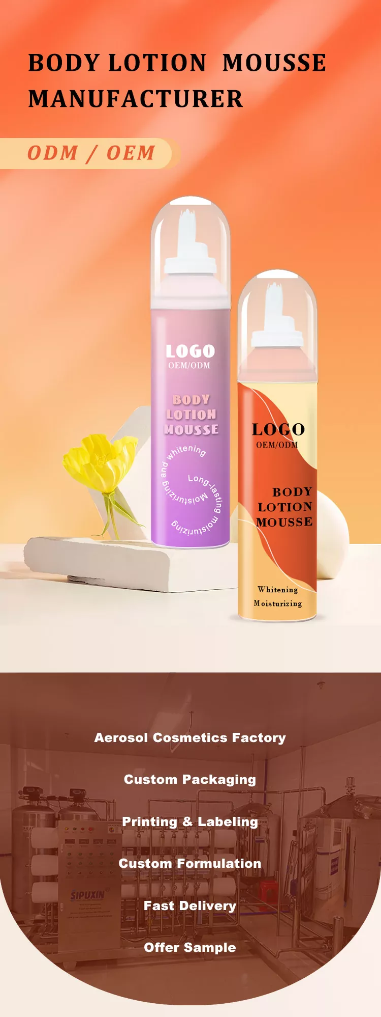 Mousse Lotion Body Lotion Body Body Body Lotion ที่มีความสว่างคล้ายเมฆเป็นที่ชื่นชอบของผู้บริโภคที่มีพื้นผิวฟองที่มีน้ำหนักเบาการดูดซับนมหนึ่งวินาทีอย่างรวดเร็วและความรู้สึกชุ่มชื้นที่ไม่เหนียวเหนอะหนะ สูตรของเรารองรับการใช้งานทั้งแบบเปียกและแห้ง แต่มีประสิทธิภาพมากขึ้นเมื่อใช้ความชื้นเล็กน้อยหลังจากอาบน้ำเพื่อล็อคความชื้น นี่คือวิธีการใช้งาน: