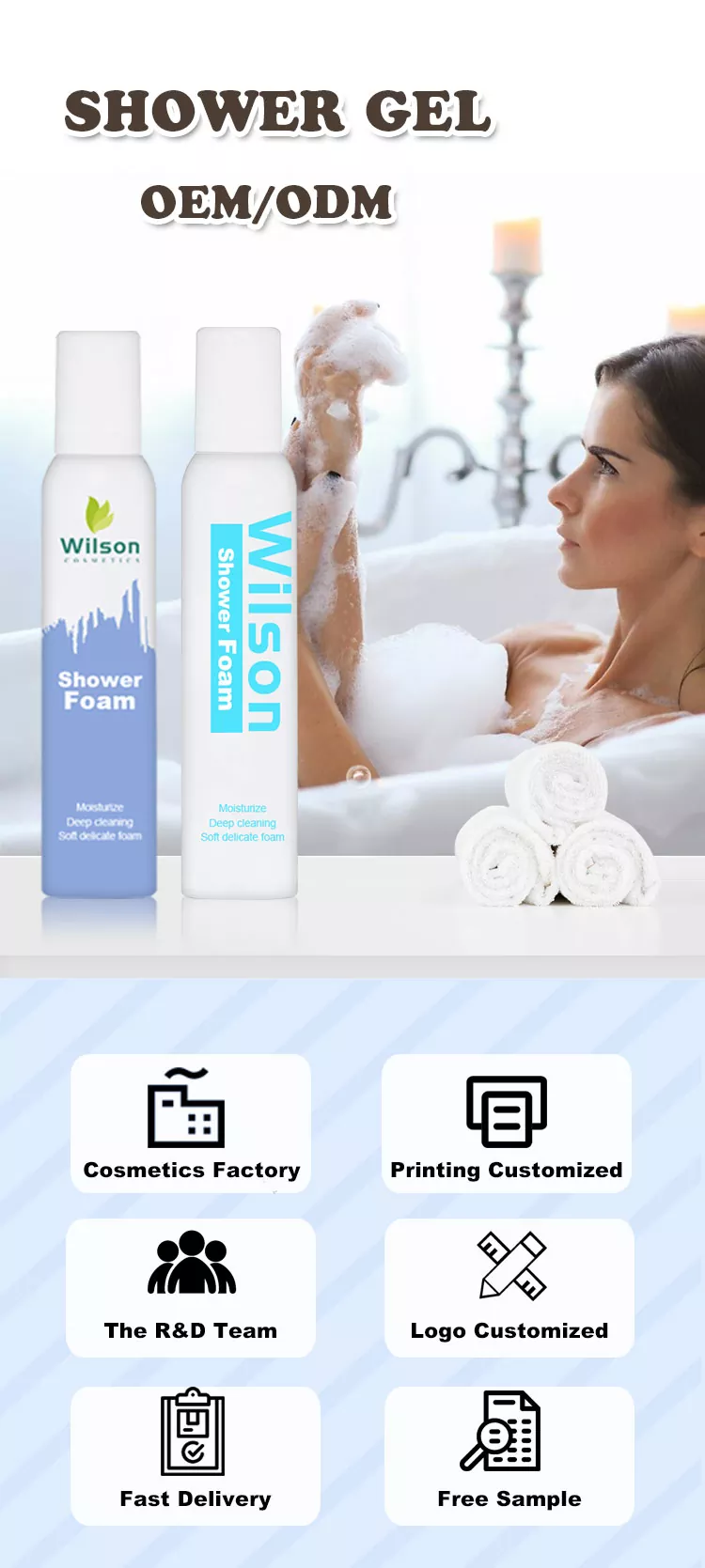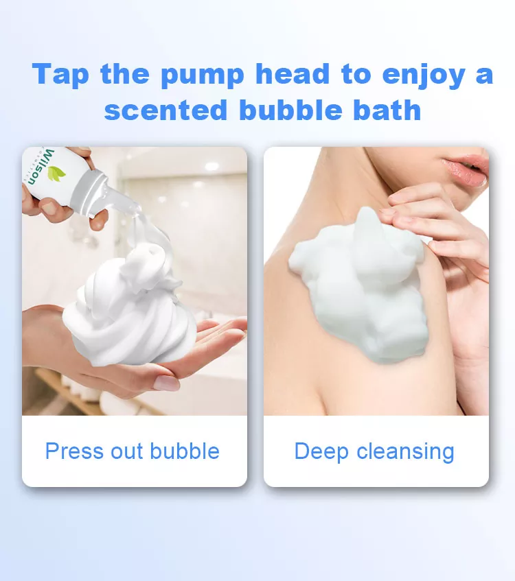 Wilson Long-Lasting Bubbles Hydrating Shower Foam ใช้การซีลสูญญากาศ การใช้ส่วนผสมของกรดไฮยาลูโรนิกที่ปราศจากมลภาวะซ้ำๆ เพื่อให้คุณเพลิดเพลินกับการอาบน้ำที่บริสุทธิ์ยิ่งขึ้น