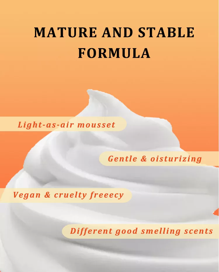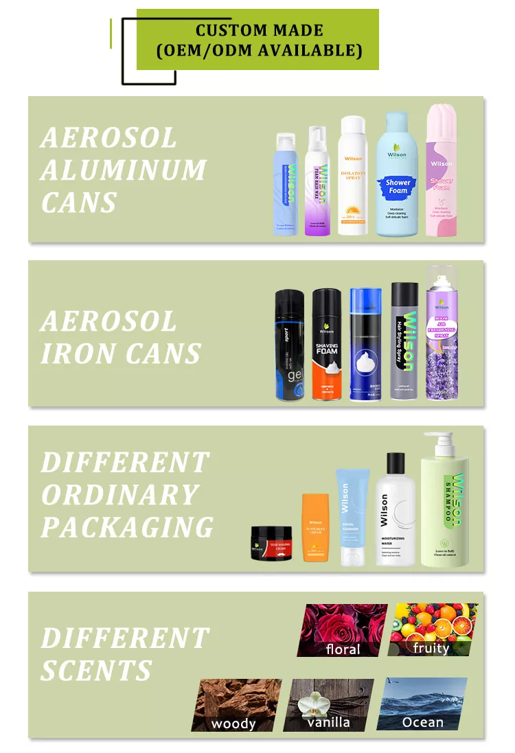 Wilson Quick Absorption Lightweight Texture Body Lotion Mousse เป็นมอยเจอร์ไรเซอร์ติดทนนานที่สามารถซึมเข้าสู่ร่างกายได้ มูสของเรามาในรูปแบบสเปรย์ในกระป๋องอลูมิเนียม ซึ่งทำให้เกิดฟองเข้มข้นเมื่อกด เมื่อเทียบกับความรู้สึกหนักและเหนียวของโลชั่นแบบดั้งเดิม Body Mousse ของเราให้สัมผัสที่บางเบาราวกับก้อนเมฆที่นุ่มนวลและหนาแน่น นอกจากนี้เรายังมีสูตรหลากหลายให้เลือก เช่น คุณสามารถเพิ่มลงในสูตรที่มีสารสกัดที่ให้ความชุ่มชื้นที่มีประสิทธิภาพสูง เช่น กรดไฮยาลูโรนิกหลายชนิด สารสกัดจากพืชธรรมชาติ ฯลฯ ซึ่งทำให้โครงสร้างจุลภาคของโฟมเอื้อต่อองค์ประกอบของส่วนผสมโดยตรงใต้ผิวหนังมากขึ้น เพื่อให้มีความชุ่มชื้นอย่างเข้มข้นและการล็อคเอฟเฟกต์ความชุ่มชื้นยาวนานบนผิว ผิวได้รับความชุ่มชื้นจากภายในสู่ภายนอก