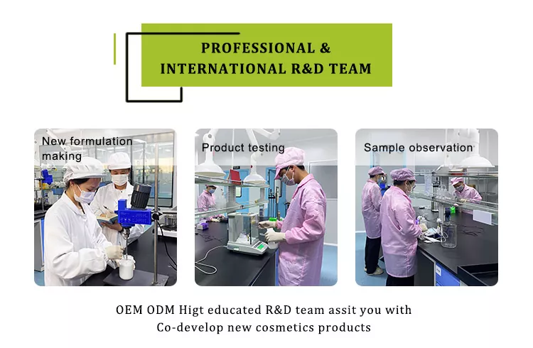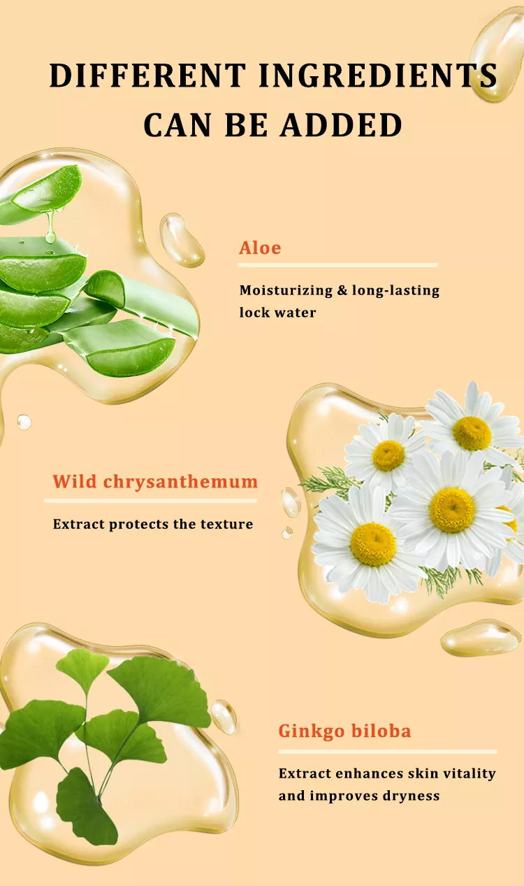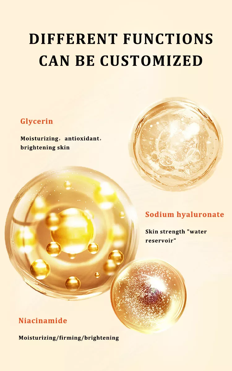 นอกจากนี้เรายังสามารถปรับแต่งสูตรที่คุณต้องการโดยพิจารณาจากส่วนผสมเฉพาะของผลิตภัณฑ์ (เช่น กรดไฮยาลูโรนิกหลัก ไนอาซินาไมด์ วิตามินอี สารสกัดจากพืชเฉพาะ เป็นต้น) น้ำหอม (เช่น กุหลาบ ชาขาว ไม่มีกลิ่น ฯลฯ) และไม่ว่าจะมีเอฟเฟกต์พิเศษหรือไม่ (เช่น การซ่อมแซมอย่างเข้มข้น การทำให้ผิวขาวขึ้น กระชับขึ้น เป็นต้น)